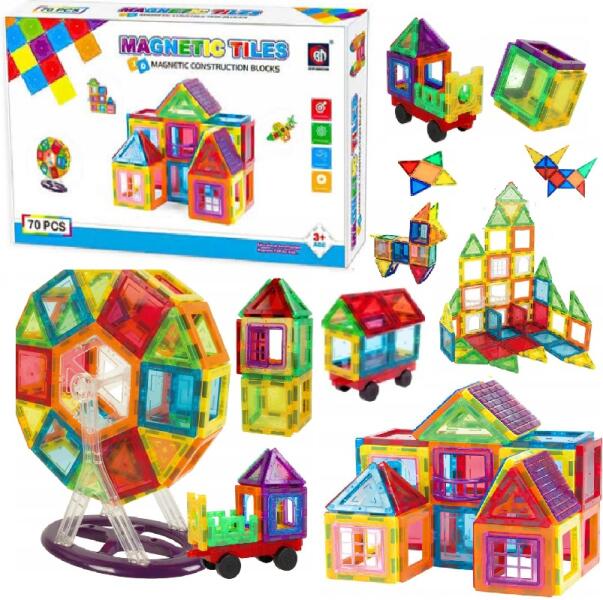Mágneses Építőkockák Építőpanelek Oktatási Készlet Nagy Puzzle 70DB-OS (KLOCKI MAGNETYCZNE)ALLEGRO