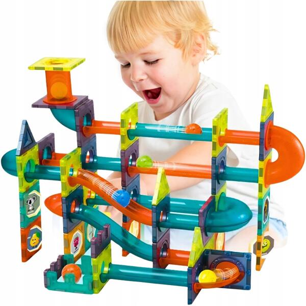 MEMFLOW Mágneses Építőkocka Szett XXL Golyópálya Golyóstoll 96 Db-os Nagy Pálya (1202)ALLEGRO