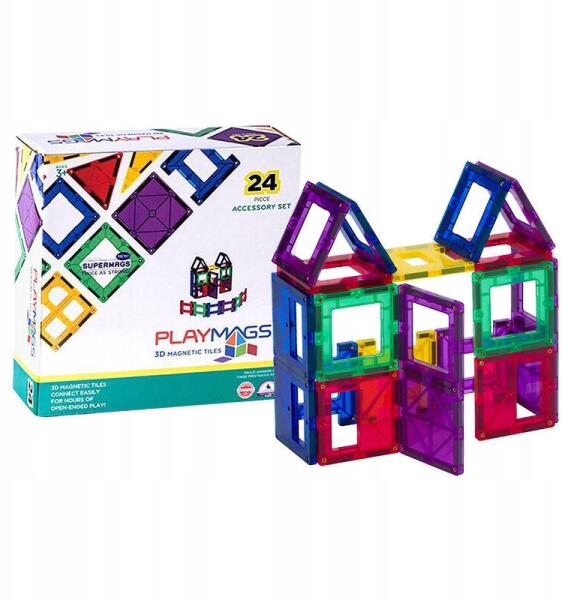 Playmags Mágneses Építőkockák 3D Oktatási Építőjáték Gyerekeknek 24 Db-os (162)ALLEGRO
